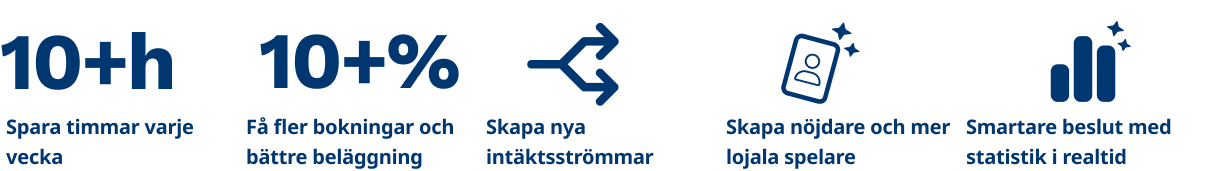 Ta bättre beslut med tydligare insikter. Följ intäkter, beläggning och bokningsmönster i realtid, så att du kan förbättra nyttjandegraden, upptäcka möjligheter snabbare och driva din anläggning med större trygghet.